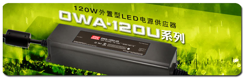OWA-60U(60W)及OWA-90U(90W),是以”隨插即用”為特色之外置型LED電源供應器。為了提升產(chǎn)品應用范圍,明緯將OWA家族最高瓦數(shù)向上推升至120W,推出了OWA-120U系列。OWA-120U全系列取得UL8750成品類安規(guī)認證,對采用標準兩極美式插座之地區(qū)且設計有電源連接埠之LED照明系統(tǒng)為非常理想之電源供應器。OWA-120U提供12V~54V等九種不同輸出電壓之機型,且各機型皆有”定電壓(C.V.)+定電流(C.C.)”兩種輸出模式,可使用於各式LED照明應用;機體內(nèi)部灌滿導熱矽膠,且電源本體具有IP67防護等級,使得OWA-120U可工作於高塵、高濕氣之環(huán)境。適合的應用包含LED裝飾照明、LED室內(nèi)照明及LED辦公室照明等。